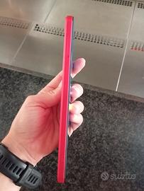 Rosso magenta firmato "Pantone" con retro in pelle sintetica che rende piacevole al tatto. Confortevole per l'utilizzo con una mano. Tenuto in maniera impeccabile senza un graffio, molto leggero (166g) ma con una batteria veramente capiente (5000mAh).