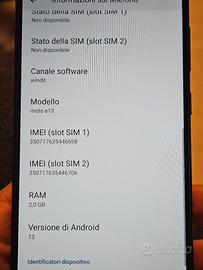 Motorola MOTO E13 2/64GB - Nero cosmico Grado A+ Con scatola originale Android 13 €45 COVER IN REGALO