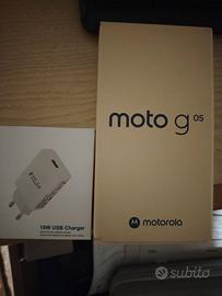 Vendo Motorola Motog 05 mai usato, aperta solo la scatola. Memoria 4/128, batteria 5200 mah, colore verde, processore Mediatek Helio G81, display 6, 67 pollici, fotocamera principale 50 megapixel, completo di scatola e cover trasparente. In più caricatore da 18 w con cavo e scatola originale.