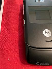 Vendo Motorola Razr V 3 da collezione. Kit che comprende oltre al telefono, scatola originale, carica batterie, seconda batteria originale, cover in pelle, cuffie mai utilizzate, adattatore micro usb, cavo usb, manuali inglese, tedesco, italiano, francese, cd di installazione e guida rapida. Perfettamente funzionante, seconda batteria acquistata un anno fa e caricata regolarmente. Dalle foto sono evidenziati alcuni segni estetici sul fronte della scocca. Telefono richiudibile, compatto e funzionante, adatto per chi volesse utilizzarlo e per chi volesse un oggetto da collezione. Disponibile alla spedizione tramite subito, preferito il ritiro a mano.