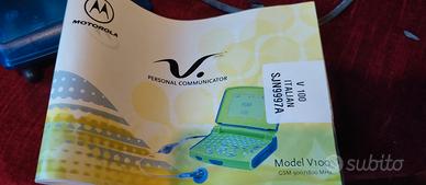 Motorola personal Comunicatore Vintage. MOTOROLAV1OOPERSONAL COMMUNICATOR.Era il nuovo must della Motorola per giovani ma non solo all' epoca . Trasferiva i vantaggi di un computer portatile in un telefono dalle dimensioni ridotte (92x72x25 mm.): comunicazioni vocali, SMS, e-mail facilitate. Tecnologia GSM Dual Band, funzioni VibracallTM e Voice Dialling. Ha anche una nuova funzione: il VoiceNoteTM, che consente di registrare senza interrompere la conversazione in corso. Costava490 mila lire Incluso il caricatore originale e manuale istruzioni , la batteria è stata levata da me per non farla rovinare lasciandola attaccata e non la trovo più , continuerò a cercare, se non la trovo vi sconterò qualcosa per acquistarla . Il caricatore è funzionante ma il filo si è spellato e quindi verrà ricoperto con del nastro .