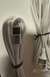 N.2 Cavi di ricarica Iphone, da USB-A a Lightning, lunghezza cavo 3mt, compatibile per modelli fino a Iphone 14, Rivestimento in tessuto intrecciato argentato, n.1 cavo nuovo-mai usato, n.1 cavo usato ma funzionante.