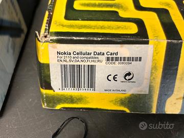 Telefono GSM Nokia 2110, completo di caricsbatterie, kit auto con microfono ed altoparlante esterni, controllo con pad , scheda pcmcia per connessione al PC. La batteria non carica piu.