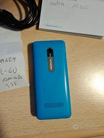 Nokia 301 perfettamente funzionante, completo di tutto ma senza batteria. Nokia 301 è un telefonino del 2013, che ha un display in formato QVGA con una risoluzione di 240 x 320 pixel e un'ampiezza di 2.4 pollici e monta una fotocamera principale con una risoluzione di 3.2 MP. Nokia 301 prevede una batteria da 1200mAh di capacità che assicura 816 ore in standby o 480 minuti in conversazione e adotta una memoria di 64MB con slot microSD. Si cede visto e piaciuto come in foto.
