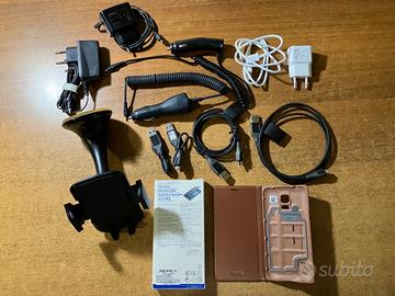 A corredo: 1 spina caricatore con relativo cavo + 1 caricatore da auto (12V) + 1 Flip cover dedicata mai usata + 1 supporto per telefono a ventosa per auto.