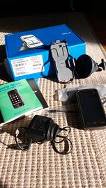 La batteria tiene ancora oltre un giorno, ottima ricezione, cosa che tanti smartphone non hanno, navigatore, mappe, supporto a ventosa per auto, possibile installare applicazioni dalla Suite dedicata. Cover nera e fucsia.