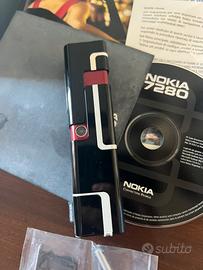 Nokia 7280 Black Lipstick Phone. Esteticamente come nuovo, con ancora pellicola sullo schermo. Viene ceduto con scatola propria (imei del cellulare ed imei della scatola combaciano), inoltre ci sono: caricatore, carrello sim, spilla rimuovi sim, cd, cuffie e libretto. (Ci tengo a segnalare però che contenitore interno rosso della scatola non è presente, quindi riceverete solo tutto ciò che vedete in foto) Il telefono funziona, l’ho testato con una sim scaduta per avviarlo ed ho verificato personalmente i pulsanti, display, audio, vibrazione e fotocamera. Ho lasciato in sospeso da verificare solo il reparto chiamate poiché non avevo modo di testarlo con una sim attiva “grande”. (Per questo lo vendo come da testare per evitare discussioni, ma penso funzioni tutto perché è praticamente nuovo, ha il Life timer a 0000:01 come potete vedere nell’ultima foto) P.s. Non essendo mai stata cambiata la batteria, c’è ancora l’originale dentro e non conosco la capacità di autonomia/durata.