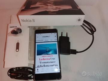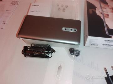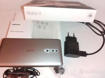 Vendo dalla mia collezione un Nokia 8 colore silver (steel) usato pochissimo e perfettamente funzionante, costava 449 euro ed era il top di gamma della Nokia: dual SIM, rete LTE 4G 8 Core 2.2 GHZ Memoria 64 GB Gps SI Display 5.3 2560x1440 Foto 13 Mpx Video 4K. E' aggiornato a Android 9, batteria originale Nokia cambiata lo scorso anno. Nessun segno d'uso sul retro , schermo perfetto con un segno minuscolo e quasi invisibile su un angolo. Fornito con la sua confezione originale completa di tutto: auricolari mai utilizzati con cuscinetti di ricambio, strumento per inserire la SIM, caricabatteria originale. Consegna a mano in Torino o spedizione.