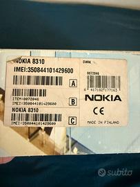 Nokia 8310 con scatola accessori e uricolari originali nokia con isctrizioni libricini manca caricabatterie