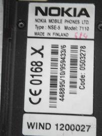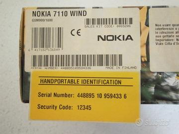 Ese mplare unico con confezione Nokia 7110 originale standard WAP, disegnato per permettere un facile accesso a Internet da un telefono mibile. Made in Finland, display grafico, progettato per soddisfare anche l'utenza cinese, il telefono infatti ha un vocabolario di 9000 parola in lingua cinese.