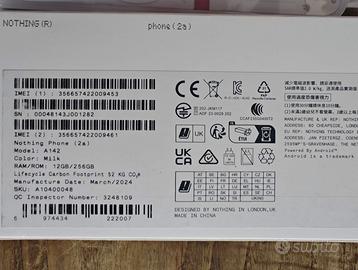 Nothing Phone (2a) 12+256GB perfetto !! Non scambio, preferibile vendita di persona e a persone realmente interessate Accetto anche pagamento contanti, bonifico O SPEDIZIONE E PAGAMENTO TRAMITE SUBITO Offro massima serieta', Grazie Fabio.