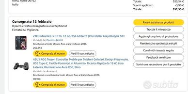 Vendo per monetizzare dato che sono cose che mi sono state regalate e non le uso, Smartphone nuovissimo preso circa 2mesi fa NUBIA NEO GT3 12GB ram e 256GB memoria + Rog Tessen pad da Gaming+custodia asus Rog originale il tutto ad un prezzo (affare 330e tutto) POTETE VEDERE DALLA FOTO quanto e' stato pagato il tutto SMARTPHONE+PAD aggiungeteci 46e di custodia e sono oltre le 400e di materiale, Vendo anche separatamente a 240 lo smartphone a 65e il pad e a 35 e la custodia. Se venite voi a ritirare e prendete TUTTO vi mostro il tutto per farvi vedere che sono nuovissimi e il loro funzionamento P.S SE VENITE VOI posso limare il PREZZO. Mi trovo sulla prenestina collatina p.togliatti. rispondo a mail sms wup subito. NON SPEDISCO non SCAMBIO accetto contanti o bonifico istantaneo STOP