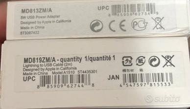 NUOVI Kit Ricarica Originale Apple: Alimentatore 5W + Cavo Lightning 2m