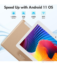 NUOVO 10 pollici android tablet, WIFI Android 11 TABLET COMPUTER 4GB RAM 64GB ROM 256GB Espandibile |Bluetooth|2.5D IPS 1280 Full HD (Oro)|8MP Fotocamera 2|Batteria 6000mAh Tablet Pc