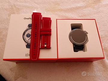 OnePlus Watch 2 Smartwatch AMOLED GPS Cardio IP68 WearOS Google Nordic Blue con scatola e accessori originali con ricevuta per garanzia datata 19.06.2025, compreso cinturino Rosso di ricambio come da foto.