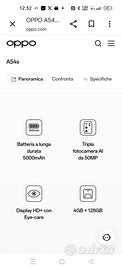 Oppo a54 con scatola originale accessori originali nuovimemoria sd16gb,2 custodie una nuova trasparente e una in pelle nera a portafoglio. Ritiro di persona a casa.