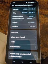 x inutilizzo acquistato circa 2 mesi fa passato ad altra marca aperto utilizzato circa 10gg ripristinato di fabbrica attualmente è imballato android 15 sistema operativo snapdragon 6 gen. 8/256 GB leggerissimo molto fluido display da 6.57 scocca vetro alluminio completo di scatola cavo libretto istruzioni oltre 22 mesi garanzia oppo Italia con fattura acquisto zona borghesiana casilina Roma €180 xchi interessato spedisco