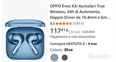 OPPO Enco X3i Auricolari True Wireless, 44h di Autonomia, Doppio Driver da 10.4mm e 6mm, Bluetooth 5.3, Controlli Touch, Cancellazione del rumore IA, Android e iOS, IP55, [Versione Italiana], Blue.