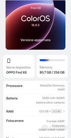 vendo Oppo find X8 versione global 12 GB RAM 256 GB memoria