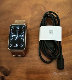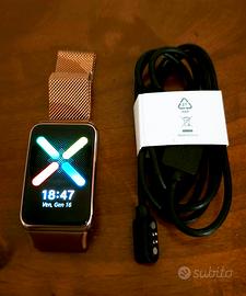 Oppo Watch Free come nuovo, mai utilizzato, fornito con cavo di ricarica originale e cinturino in acciaio dorato magnetico e quello in gomma originale, NO custodia originale
