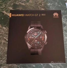 orologio smartwatch huawei gt2 nero 46 mm completo di scatola perfetto modalita run, misuratore battiti, stress, huawei health, notifiche whatsapp, sms, microfono e risponde alle chiamate dall'orologio, parli dall'orologio stile supercar, musica.