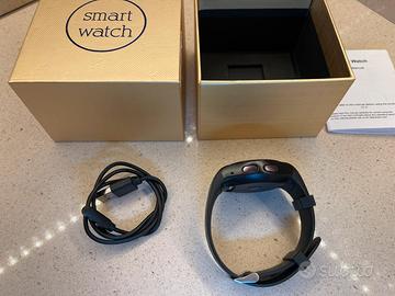Orologio smartwatch KingWear KW18 in condizioni più che ottime completo di scatola, istruzioni, cavetto per la ricarica e spilletta per l’estrazione del cassetto per inserire la Sim card.