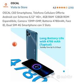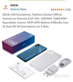 OSCAL C60 Smartphone, Telefono Cellulare Offerta Android con Schermo 6.52" HD+, 4GB RAM 128GB ROM Espandibile, Camera 13MP+5MP, Batteria 4780mAh, Face ID, Dual SIM 4G Smartphone con 3 Slots.