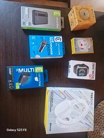 vendo pacchetto composto da Power bank da 5000+presa cara batteria veloce per cellulari e altro + caricabatterie doppia presa da muro + mini cassa bluetooth+ auricolari bluetooth+ orologio sport Watch che si collega al cellulare+cuffie senza fili bluetooth...tutto nuovo mai aperto ancora sigillato