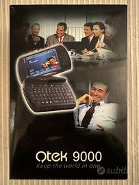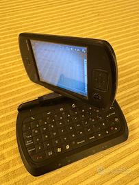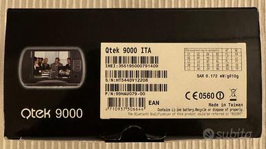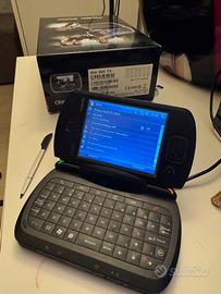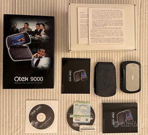 QTek 9000 (HTC Universal), PDA‑phone con Windows Mobile 6 (firmware aggiornato fornito dall'operatore O2) con tastiera italiana QWERTY e display ruotabile.Kit originale completo con scatola, custodia, pennino, 2 manuali, 2 CD di installazione, cavo di ricarica USB -> mini USB. Dispone di 64Mb di memoria incorporata e di uno slot per scheda SD (non inclusa). Completamente funzionante, solo la batteria originale si carica ma tiene la carica solo per pochi minuti (considerando che ha circa 20 anni).