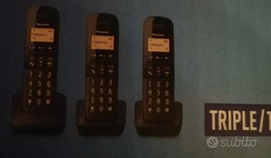 Vendo il prodotto descritto, composto da tre unità telefoniche, relative basi, caricatori elettrici, sei pile ricaricabili, cavo di connessione con la rete telefonica.