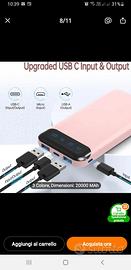 NUOVA, IN CONFEZIONE ORIGINALE, con caricatore, schermo Led e display digitale. È un potente caricatore d'emergenza per viaggi e outdoor. Ingresso type C/Micro, batteria al litio polimero sicura e stabile. Misura cm. 14 x 6,75 x 1.55. Possibilità di collegare contemporaneamente più dispositivi. Ne ho 3 pezzi.