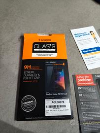 Vendo protezione schermo in vetro temperato della Spigen, modello GLAS.tR Slim, specifica per Xiaomi Redmi Note 7 e Redmi Note 7 Pro.