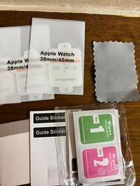 Set di 4 pellicole per Apple Watch 38/40mm (io le ho usate per Serie 6) comprese di tutti gli accessori per la pulizia e video per la loro corretta applicazione