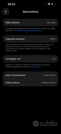 Come da titolo vendo IPhone 15 Pro Max con batteria al 100% sostituita ad Ottobre come da screenshot.