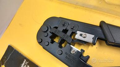 Pinza crimpatrice spellacavi per connettori RJ-45, RJ-11, RJ-12 e cavi da 4, 6 e 8 poli, con istruzioni per l'uso sul retro - NUOVA, mai usata - come da foto - [qw 9628] -