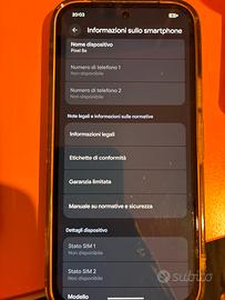 Vendi picxel 8a in condizioni ottime. Salute della batteria 100 % come in foto, utilizzato meno di sei mesi. Nessun segno evidente di graffi o ammaccature INCLUSO: Scatola orginale, con cavo originale, cover trasparente e vetro protettivo già montato.