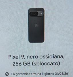 Pixel 9 da 256 GB di colore nero. completo di scatola cavo di ricarica mai utilizzato cover spigen e vetro applicato più uno nuovo. Ancora in garanzia.