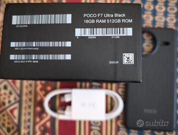 Xiaomi Pocophone F7 Ultra 16 GB di RAM 512 GB di disco colore Dark nero versione top di gamma con il max quantitativo di memorie per velocità e memorizzazione app / foto Utilizzato sporadicamente come secondo telefono Perfetto PARI al nuovo, nessun segno sullo schermo o graffio Stato d'uso batteria 100 % Compresa cover in silicone scatola con tutti gli accessori in dotazione vetro proteggi schermo Fattura e garanzia ufficiale Xiaomi fino a settembre 2027 Telefono da 800 euro sul sito ufficiale e 700 su Amazon NO offerte assurde !!!! possibilità di spedizione