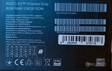 Vendo Pocophone X3 Shadow Gray usato - 6GB RAM - 128GB ROM 2 cover trasparenti e 2 vetrino per schermo (da applicare) inclusi.