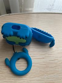 Porta auricolari in silicone a tema Stitch di colore blu con dettagli verdi e rosa. Include un laccetto per il trasporto. In perfette condizioni, come nuovo