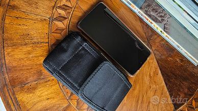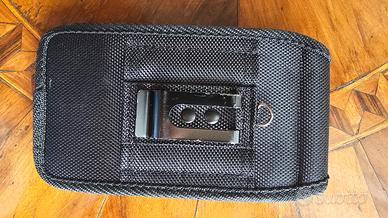 porta smartphone in tela nuovo mai usato, per smartphone con schermo 6,5 pollici, dotato di passante cintura, gancio cintura, anello per catenella tracolla