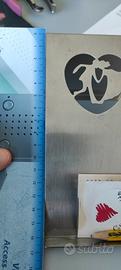 Supporto per il cellulare da tavolo, scrivania. In acciaio. Molto elegante e raffinato, raffigura una coppia che si bacia all'interno di un cuore. Ideale come oggetto per un regalo. cuore matto