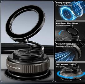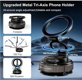 PANAMALAR Magnetico Porta Cellulare Auto, Upgraded 3-Assi Supporto Telefonico Magnetico Pieghevole con Ventosa a Vuoto, 360°Rotazione Porta Cellulare Auto per iPhone 16/15/4/13/12 o telefono Android