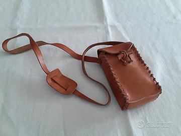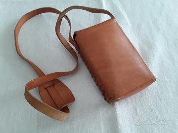 Porta cellulare / macchina fotografica. Materiale : cuoio naturale 100%. Colore : tinta cuoio. Misure : cm 13 x 8 x 4. Tracolla : cm 43. astuccio di manifattura artigianale, STATO : OTTIMO.