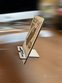 Porta smartphone da scrivania in legno inciso con il laser.