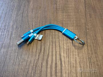 Pratico accessorio tascabile che unisce la funzionalità di un portachiavi con la versatilità di un cavo di ricarica universale. Grazie al suo design compatto e leggero, puoi portarlo sempre con te per ricaricare o sincronizzare i tuoi dispositivi ovunque ti trovi.