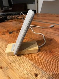 Postazione carica cellulare wireless, non serve cover magnetica o calamita nel cellulare Presa USB C Elastici antiscivolo sotto la base in legno