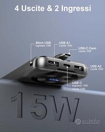 Potente Power Bank da 10000 mAh 3A, a ricarica ultra rapida, Ingressi USB e Type C, ultra slim (cm. 1,8) e leggerissimo (236 grammi), compatobile con IPHONE, SAMSUNG, TABLET e tutti quegli apparati dotati di spinotto di carica Type C!!