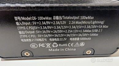 Vendo Power Bank ad alte prestazioni, assemblato professionalmente con componentistica di alta qualità. Non è il solito prodotto da scaffale: il cuore di questo dispositivo è composto da 6 celle LiitoKala 21700 da 5000mAh l'una, per una capacità reale e garantita di 30.000 mAh. Il kit è nuovo, ancora con pellicola protettiva applicata. È stato solo testato per verificarne il perfetto funzionamento e la capacità di ricarica. CARATTERISTICHE TECNICHE PRINCIPALI: Potenza Massima: PD 100W (Ricarica rapidamente anche MacBook, Notebook e laptop Type-C). Capacità: 30.000 mAh (reali, grazie alle celle LiitoKala). Porte disponibili: * 2x USB-C (Input/Output con ricarica rapida). 2x USB-A (Output ricarica rapida). Protocolli supportati: PD 3.0, QC 4.0, SCP, AFCP PPS e altri Display LED: Indicazione precisa della percentuale di carica e del voltaggio/amperaggio in tempo reale. Sistema Solderless: Assemblaggio meccanico preciso (senza saldature che possono deteriorare le celle). Le celle LiitoKala sono rinomate per longevità e stabilità. È la soluzione definitiva per chi viaggia / outdoor o lavora in mobilità e ha bisogno di caricare smartphone e PC contemporaneamente alla massima velocità possibile fino a 5A (sistema ad alta efficienza). Utilizzare cavi di qualità con protocolli idonei al vostro dispositivo (la ricarica può essere fino a 20V! 5A per un totale di 100w! se il dispositivo la accetta) CONDIZIONI: Prodotto Nuovo. Ancora con pellicola originale. Viene fornito pronto all'uso. Prezzo non trattabile data la qualità delle celle interne e la natura del prodotto già assemblato e testato. Ritiro a mano accettato a Busto Arsizio (VA) o spedizione in tutta italia. MOSTRUOSO POWER BANK DA 6 PILE 21700 GRANDI! MOLTO PIU GRINTOSO RISPETTO ALLE 18650 e carica super rapida Testato con successo su: Honor Magic 7 Pro, Google pixel 7 8 pro, Samsung S25 S24 S23, iPhone 15 / 16 Pro Max, Laptop e Tablet: MacBook Pro/Air, iPad