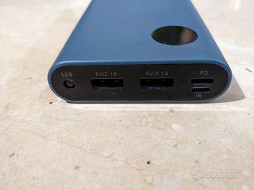 Power Bank da 10800 mAh, dotato di schermo led dove viene indicata la carica residua. Sono presenti quattro porte USB, due porte USB A, una porta USB type C e una porta Micro USB. Dotato anche di una luce led. Compatibile con la maggior parte dei dispositivi.
